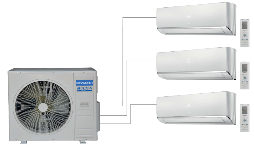 A SKYWORTH multisplit rendszerben több, akár 5 beltéri egység is működtethető egyetlen kültéri egységgel.